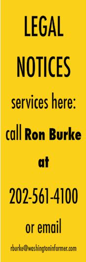 THE WASHINGTON INFORMER NEWSPAPER (ISSN#0741-9414) is published weekly on each Thursday. Periodicals postage paid at Washington, D.C. and additional mailing offices. News and advertising deadline is Monday prior to publication. Announcements must be received two weeks prior to event. Copyright 2016 by The Washington Informer. All rights reserved. POSTMASTER: Send change of addresses to The Washington Informer, 3117 Martin Luther King, Jr. Ave., S.E. Washington, D.C. 20032. No part of this publication may be reproduced without written permission from the publisher. The Informer Newspaper cannot guarantee the return of photographs. Subscription rates are $96 per year, two years $168. Papers will be received not more than a week after publication. Make checks payable to: