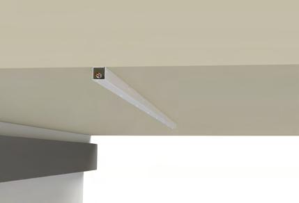Abgehängte Montage mit sehr großer „Spannweite“ von bis zu 2100 mm. Die Kabel dürfen mit oder ohne Kabelrinne verlegt werden. Ebenfalls ist eine Variante mit seitlich verschraubtem Deckel möglich.