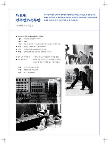 2015년 <시즌4> 《WIDE건축영화공부방》이 노매딕 스크리닝으로 운영됩니다. 올해도 본지 독자 및 후원회원 여러분들의 변함없는 성원과 참여 기대하겠습니다. 참가를 원하시는 분은 아래 일정을 꼭 확인 바랍니다.