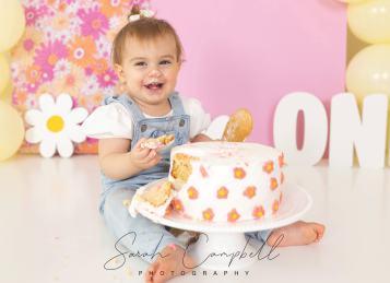 They get a perfectly good cake, dressed up in some super cute clothes and let them do whatever they want with the cake while a professional photographer captures the moment. Whether they just face plant in the cake, pick the whole thing up with their hands & shove it in their face or just smash the cake, the messier the better! Remember this cake is about to get destroyed and most likely no one ' s going to be eating it except for your child, so flavour is not that important. However, you do want the cake that your little one ' s grabbing to look great in the photos. It's up to you if you get a professional cake maker to make something elaborate, or make a simple cake yourself. One thing to keep in mind is the messier the cake can get the better. Look for a mid-size cake with buttercream frosting that your little one can easily smear. Cakes covered in fondant are harder for children to break through and don't have the essential smear factor. Sponge is better than mud as well, as it crumbles so much easier. Also ensure the cake is at room temperate for the photo shoot, if it is kept in the fridge it can be a little harder for baby to smash into. Don’t forget a change of clothes for baby