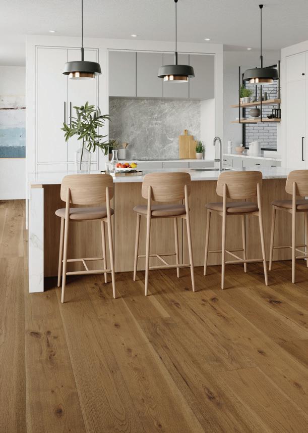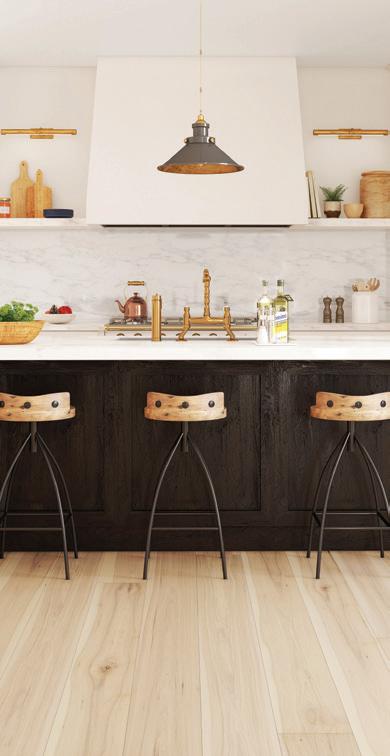 Carlisle Curated is a palette of designerinspired colors, carefully chosen from the floors most loved by our top clients. Instead of being locked into a single product, you begin with the color you love and then decide how it comes to life—select your width, grade, texture, sheen, and thickness, all crafted on the wood species that best suits your vision, from the quiet clarity of White Oak to the vibrant character of Hickory.
