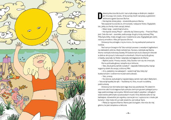 Ania spends her holidays on the beach by the Baltic Sea. The girl has a great imagination, so everything in her mind comes alive. Sometimes she will hear the voice of the wind, and other times – famous actresses from a magazine that mom reads. And she’s not bored at all, because she finds interesting objects in the sand again and again. Her mother is a biologist, so she knows the answers to all questions about the Baltic fauna and flora, even though Ania asks a lot of questions, and sometimes the aforementioned actresses interfere in the conversation.