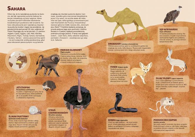Full of fantastic information and curiosities, the book unveils the secrets of the ocean and desert areas. A compendium of knowledge about water and desert as well as their fauna and flora. We all know the desert is hot! But sometimes you can get really cold there. How it’s possible?