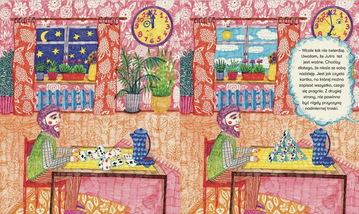 The author points to topics connected with the passing of time, the role of a person in each stage of life, growing old and old age related illnesses. She tells a story about intergenerational friendship and a family but mainly shows how to understand other people and take responsibility for them. It teaches empathy and can be a bridge between generations.