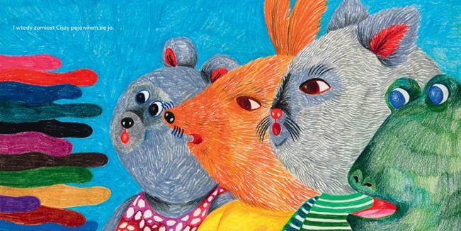 After meeting the residents of a forest, field, Arctic and Antarctic (the Author divided the book Poles into two parts so that a penguin would not have to meet a polar bear), the child may create his or her own world, sticking animals on the prepared background. Children have a chance to spread the wings of their imagination, to experiment and to create crossbreeds – for example an owl with a hare – using stickers representing different parts of animals’ body (eyes, ears, noses, muzzles, fangs or antlers).
