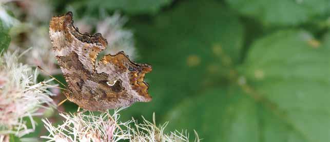 As adults, Eastern Comma butter ies primarily feed on the nectar of various owering plants, visiting a variety of owers. Some common nectar sources for Eastern Commas include but not limited to: