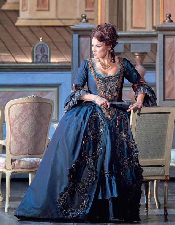 »Es gibt Menschen, die einen übersteigerten Drang haben, von möglichst vielen geliebt zu werden und deshalb stets gesellschaftliche Akzeptanz suchen, statt ihr eigenes Ich zu leben. Die Fürstin Bouillon wird auf den ersten Blick von ihrer Eifersucht getrieben. Aber in Wahrheit ist diese übersteigerte Eifersucht ein Zeichen des Gefühls einer generellen Nichtangenommenheit. Vielleicht hat sie narzisstische Tendenzen, durch die sie eine Kränkung in Übergröße wahrnimmt. Wir wissen ja genau genommen nicht viel von ihr. Wie ist ihre Ehe? Hat sie Kinder? Was war das für ein Verhältnis mit dem Grafen Moritz von Sachsen? Wie waren die gemeinsamen Nächte mit ihm? Was hat sie in ihrer Liebe alles auf ihn projiziert? Sie ist also verletzlich, unsicher und vermutlich sogar bipolar veranlagt. (Diese Tendenz haben übrigens viele der Mezzosopran-Charaktere, deshalb kommt es bei ihnen ja auch so oft zu temperamentvollen Ausbrüchen.) Rein vokal ist das Schwierige an der Fürstin, dass es keine Aufwärmphase gibt. Die Rolle fängt am Beginn des zweiten Aktes gleich mit ihrer berühmten Arie an: Zunächst braust sie sehr dramatisch los, dann kommen heikle Legatostrecken, für die man schon einige Teile des Körpers zusammenpressen muss, um mit der Luft auszukommen. Und zum Drüberstreuen geht es am Ende noch ordentlich in die Höhe! Nach dieser Arie gibt es zwar auch noch einige Passagen, in denen man beweisen muss, was man stimmlich drau at, aber es wird etwas lockerer. Dafür geht es dann darum, alle Register der Schauspielkunst zu ziehen. Grundsätzlich möchte ich die Seelenlandschaft der Figuren, die ich darstelle, nie gleich in den ersten Minuten in ihrer Gesamtheit präsentieren, sondern entschleiere erst im Laufe des Abends nach und nach immer weitere Facetten. Manchmal sogar nur stumm durch Reaktionen auf etwas Gehörtes, Gesehenes. Auf jeden Fall versteht das Publikum oft erst im Nachhinein, warum die dargestellten Charaktere zuvor gerade so und nicht anders agiert haben. Das ist wie im wirklichen Leben: Wer durchschaut schon das Gegenüber von Anfang an vollständig? Und im Falle der Fürstin Bouillon gibt es nach der besagten Arie viele schöne Gelegenheiten, ungeahnte Nuancen ihrer gefährlichen Persönlichkeit aufzudecken.«