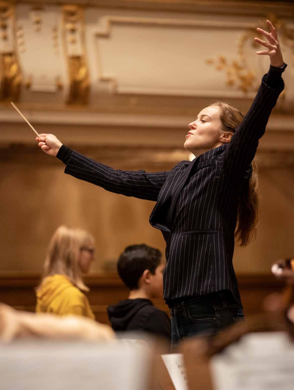 ol Nun haben Sie als Dirigentin den ganzen Tag Musik um die Ohren. Wir leben zudem in einer Gesellschaft, in der viele mit Ohrstöpseln versehen sich ihren eigenen Soundtrack schaffen. Wie gehen Sie mit einer solchen Dauermusik um? Wenn Sie am Abend dirigieren, brauchen Sie da zuvor eine Klangpause? gs Wenn ich viel arbeite, höre ich zusätzlich kaum Musik, auch nicht auf der Straße. Es ist ja auch schön, etwas Stille zu genießen. Und Zeiten der Ruhe sind mir wichtig! Es hilft mir nämlich sehr, ein bisschen abgeschieden zu studieren und zu lesen. Wenn mich dabei Gedanken von Künstlern, die zum Beispiel vor 200 Jahren formuliert wurden, unmittelbar ansprechen, ist das ungemein verbindend! So ein: »Ja, genau das, was du schreibst, fühle ich auch gerade!« Was für ein Geschenk, das heute lesen zu können! Diese Momente der scheinbaren Einsamkeit, die ich mit Büchern und Noten verbringe, sind die wichtigsten und produktivsten!