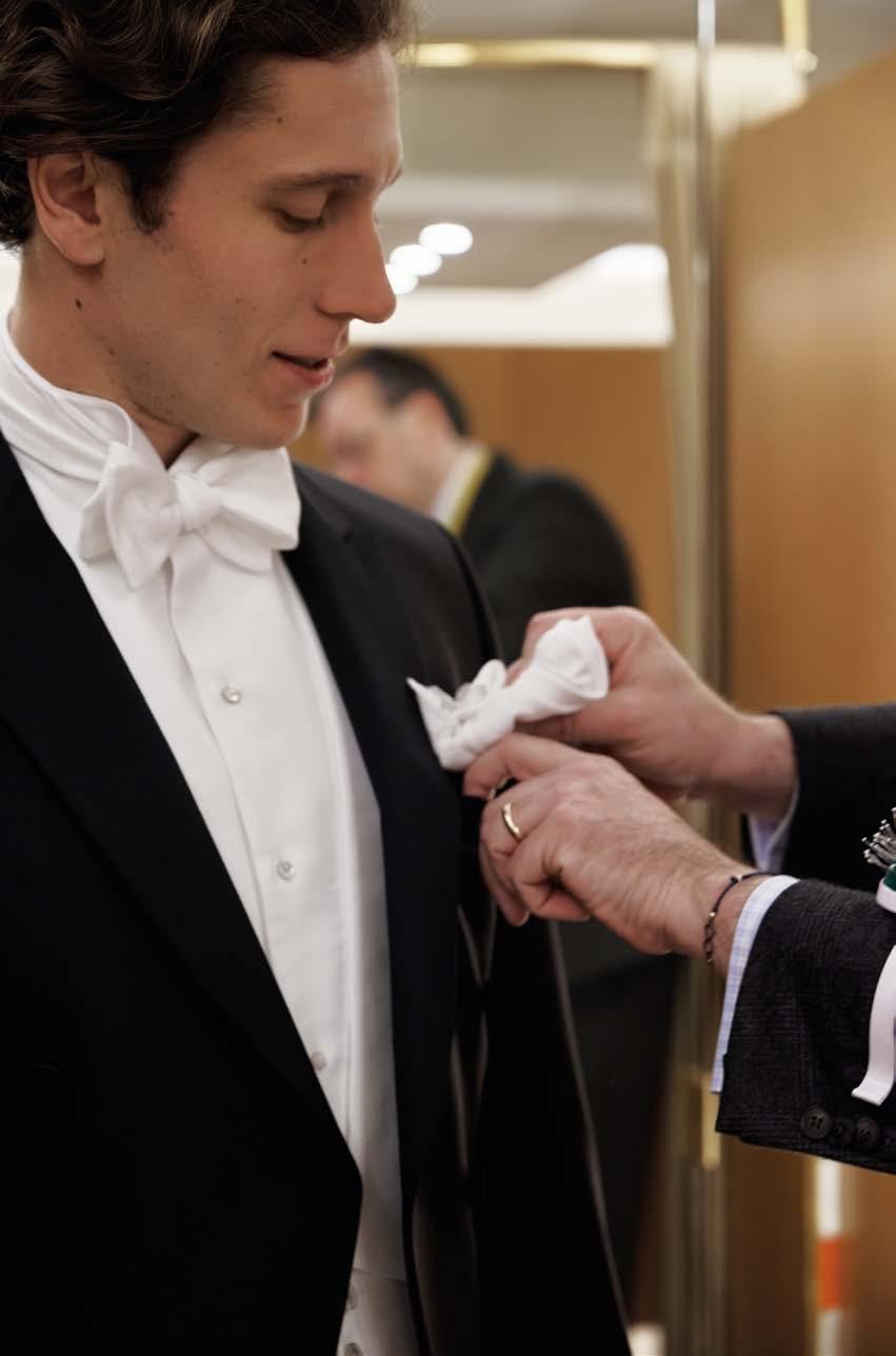 Eine maßgeschneiderte Einheit aus Frackweste und Hemd, die das Ankleiden erleichtert und zugleich den Tragekomfort des „Königs der Nacht“ neu definiert. So verbindet Nicolas Venturini das historische Erbe der Frack- und Smokinghemden mit moderner Leichtigkeit – für die Ballsaison, in denen Eleganz zeitlos wird.