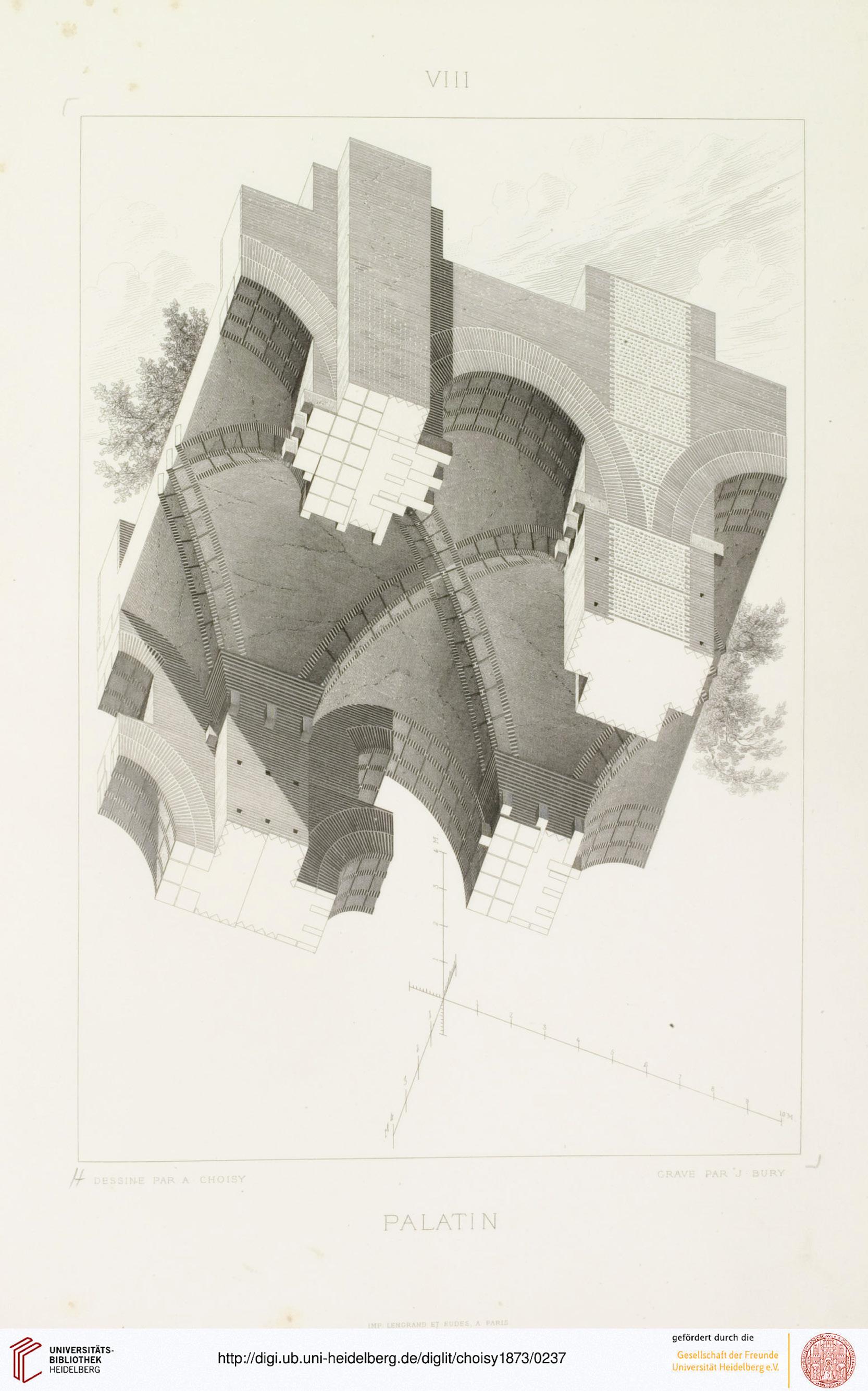 Auguste Choisy, Axonometrie eines Gewölbejochs vom Palatin, Rom, in: Auguste Choisy: L’art de bâtir chez les Romains, Paris 1873, Pl. VIII