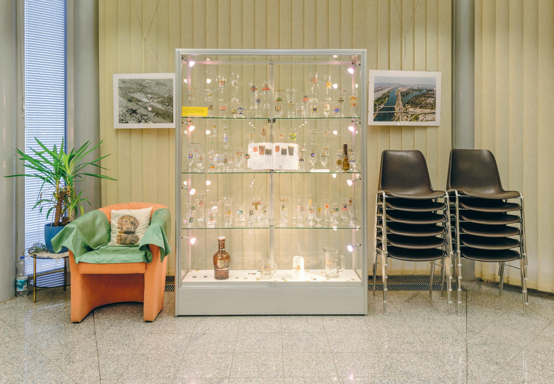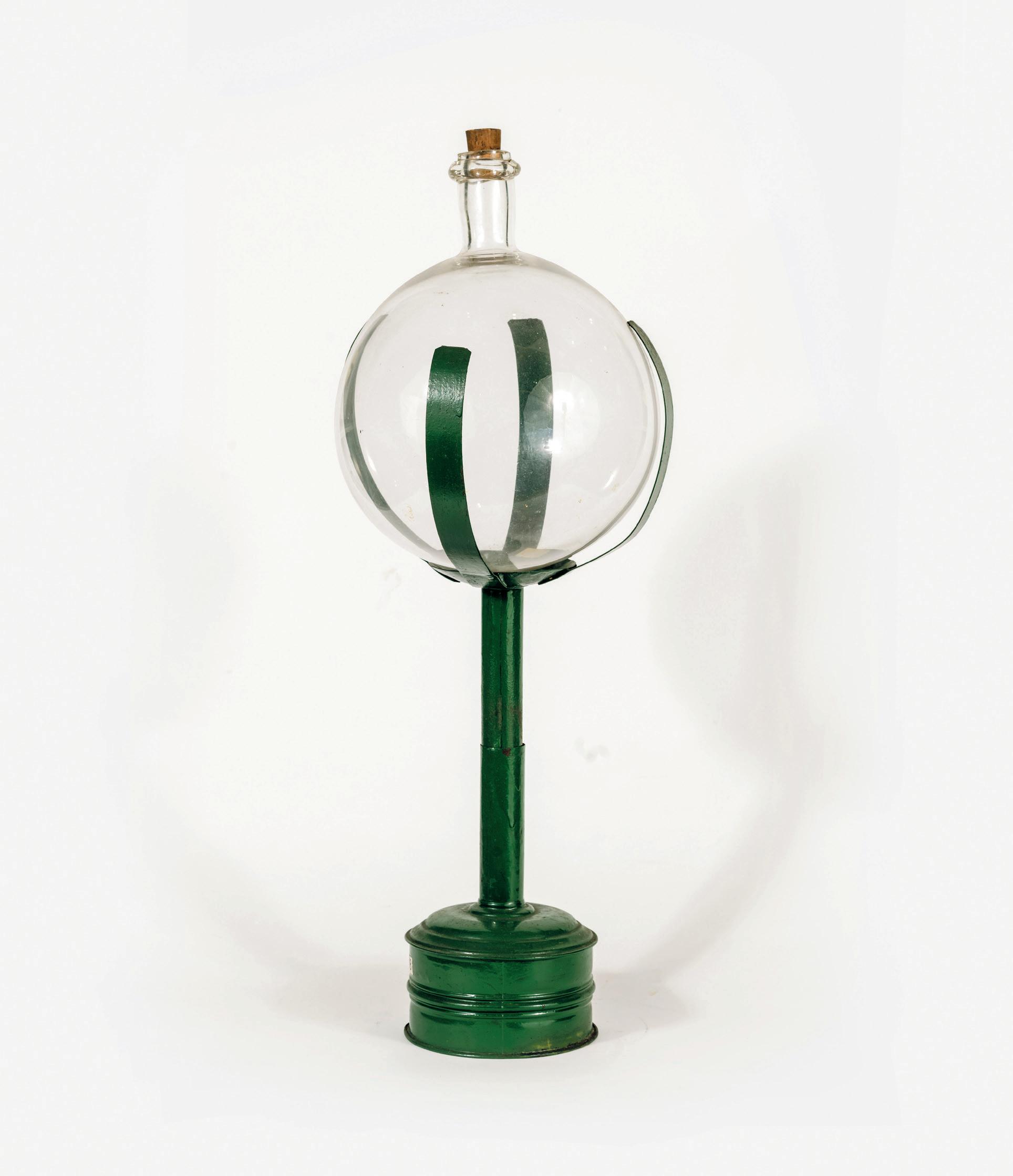 Wie kommen einfache Glasflaschen ins Museum? Es ist der Kontext, dem sie entstammen, der ihnen Bedeutung verleiht: Sie wurden in berühmten Brauereien abgefüllt –auch wenn die Brauerei Jedlesee im Unterschied zu Mautner Markhof heute vielleicht in Vergessenheit geraten ist. Ein gläsernes Objekt fällt allerdings aus dem Rahmen: die „Schusterkugel“. Sie zählte zum Inventar vieler Werkstätten – überall, wo für kleinteilige Arbeitsprozesse möglichst viel Licht benötigt wurde. Das Prinzip ist einfach: Der mit Wasser gefüllte kugelige Glaskolben bündelt das diffuse Licht wie eine Sammellinse und hilft so, den Arbeitsplatz besser auszuleuchten.