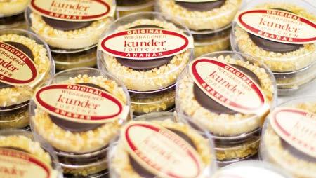 Die Basis des Törtchens bildet ein runder Waffelboden der mit Nougat gefüllt und in Zartbitter-Schokolade getaucht wird. Darauf dann ein feiner Marzipanring mit einer fruchtigen Ananasfüllung und zu guter Letzt als krönender Abschluss der feine Schoko-„Deckel“. Fertig ist eine weltberühmte Spezialität, von der im Jahr 30.000 Stück verkauft werden. Respekt!