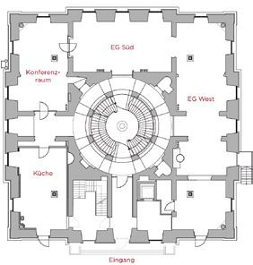 Eight rooms and salons that can be rented are arranged around the heart of the building, the Friedrich-von-Thiersch-Saal, or Friedrich von Thiersch Hall, and the extraordinary, 21-metre high domed foyer. The north wing also accomodates the table games of the Spielbank Wiesbaden casino and a public restaurant.