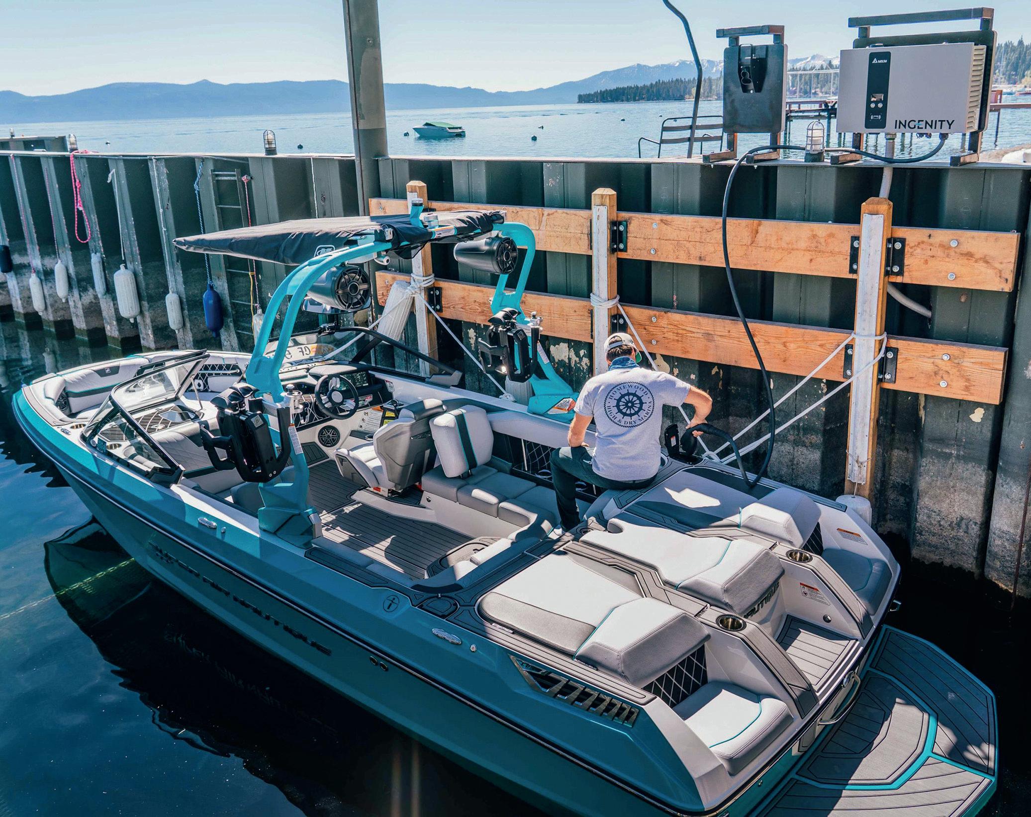 Charging under way at the dock before a day trip out on Lake Tahoe.