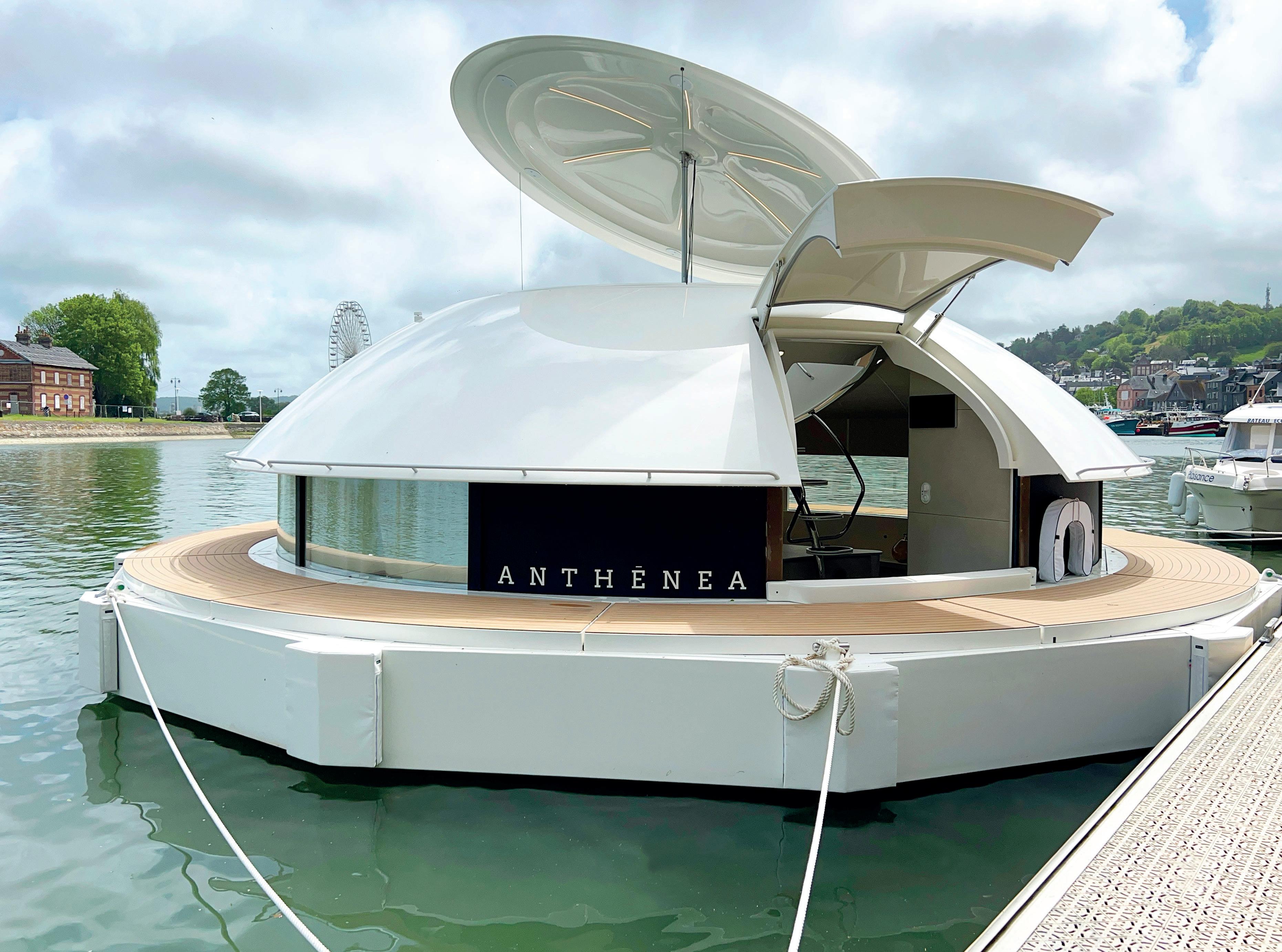 Anthénea Suite’s design model was extensively researched in order to fulfil its claim of being ‘unsinkable’. Following the development of one prototype, the final light and buoyant model has a spherical shape, which was found to be the optimal shape to guarantee the suites can withstand extreme weather conditions on the water, resisting cataclysms and ocean rising.