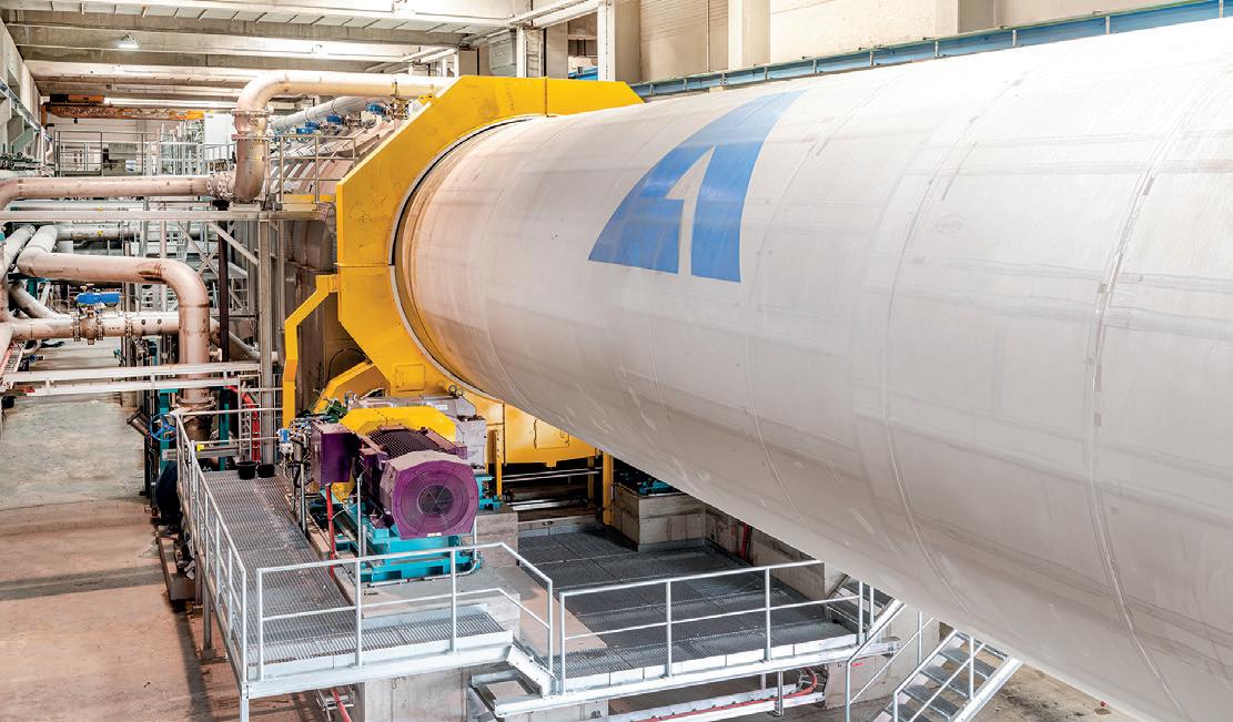 The FFD pulper, with a feed capacity of up to 2,000 admt/d, is now the largest Andritz FFD operating in Europe. It features a drum with a diameter of 4.5 metres and a length of 46 metres. The integrated recycled fibre (RCF) line, in combination with the FFD 450, daily produces up to 1,600 tons of high-quality fibre.