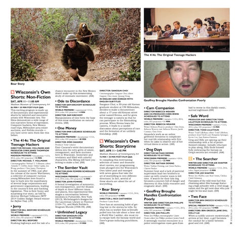 Wisconsin’s Own Shorts: Storytime SAT, APR 11 • 3:45 PM Madison Museum of Contemporary Art 76 MIN + 30 MIN POST-FILM Q&A