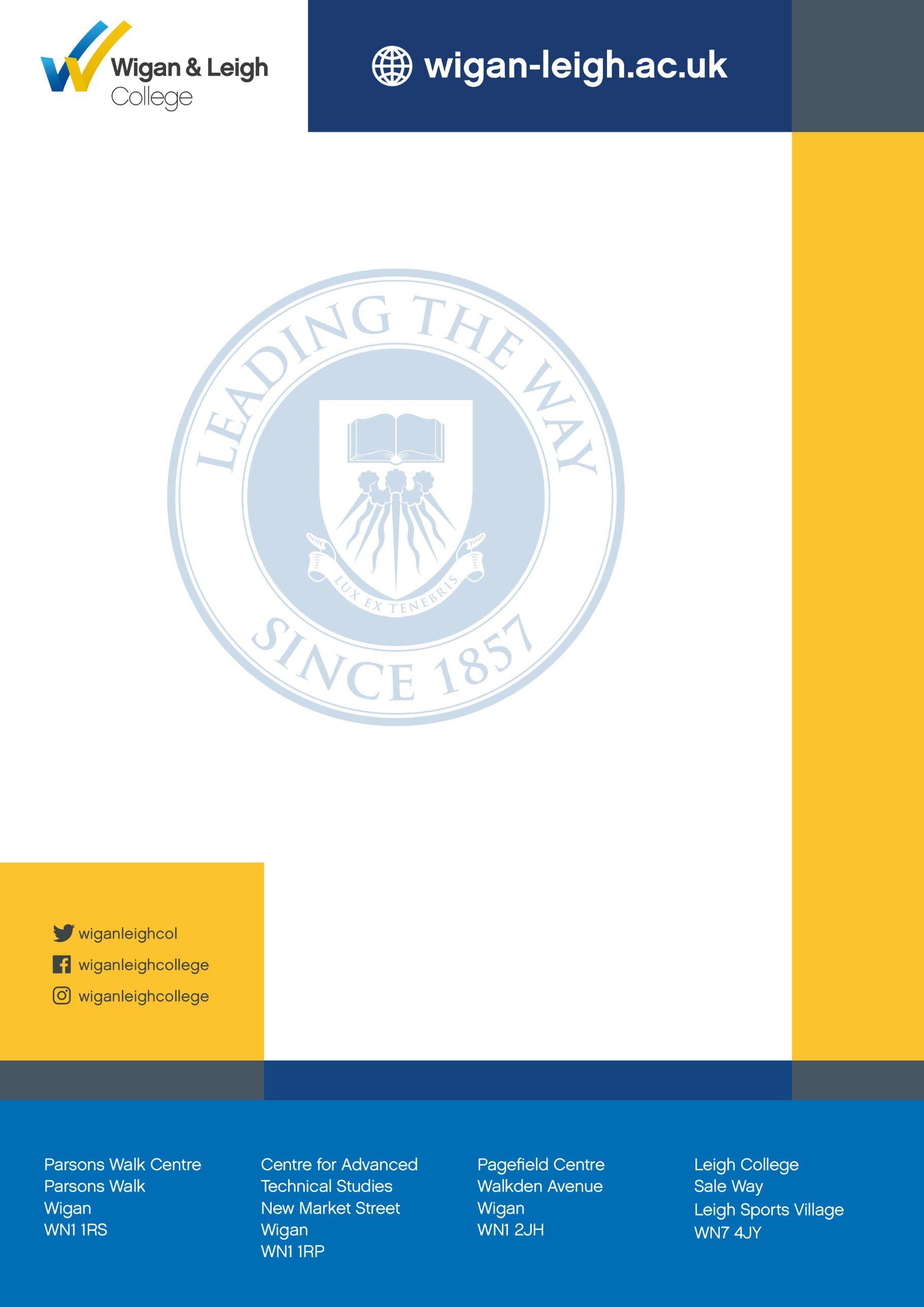 Wigan & Leigh College is a general further education college situated in Wigan. Wigan is a town and metropolitan borough in the northwest of Greater Manchester, bordering Merseyside, Lancashire and Cheshire. As a border college, Wigan and Leigh serves a wide and varied community aligned to a local and regional footprint We have developed our skills response to address local, regional and national socio-economic challenges and ambitions. The College is dedicated to delivering economic and social value and a pipeline of skilled talent.