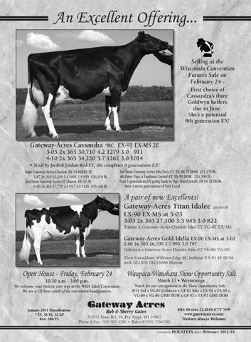 An Excellent Offering... Selling at the Wisconsin Convention Futures Sale on February 24 First choice of Cassandra’s three Goldwyn heifers due in June. She’s a potential 9th generation EX!