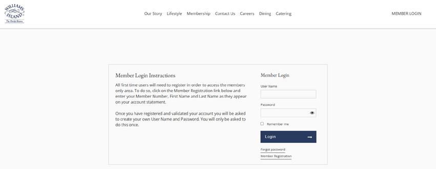 Navigate to your www.williamsislandclub.com by clicking on the Member Login link/button, or on the link/button usually located in the top right-hand corner of the page.