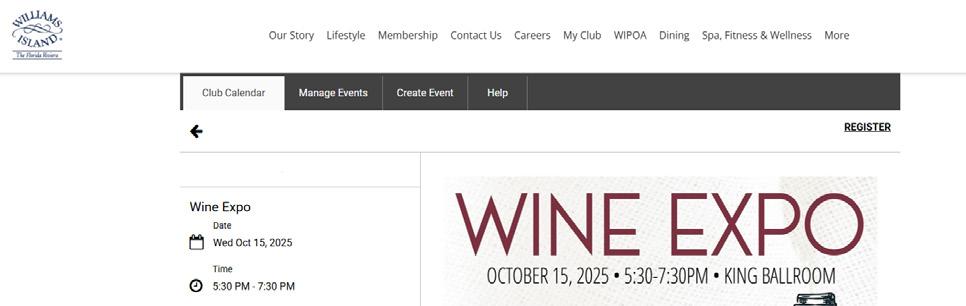 CALENDAR Log into our website at www.williamsislandclub.com.