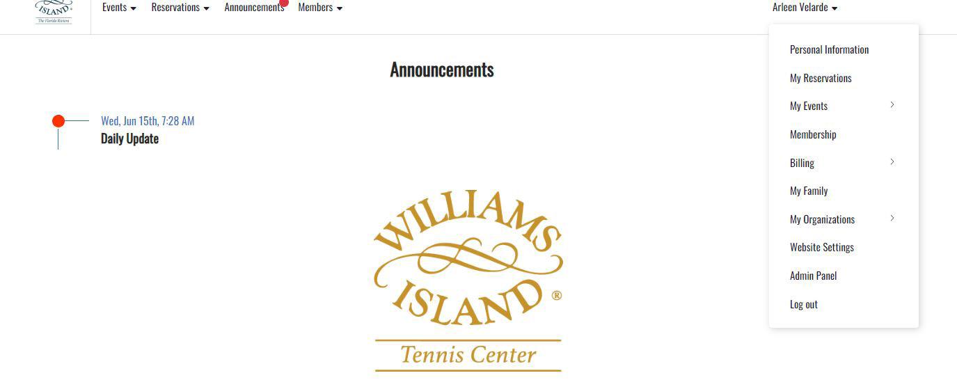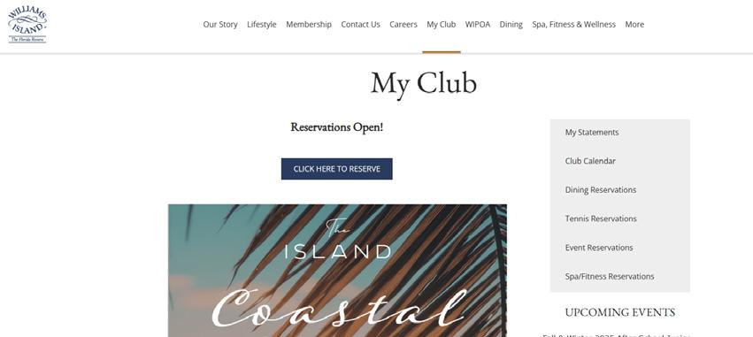 Once you have created your username and password, it can be used for the website and the mobile app. Our website is: www.williamsislandclub.com