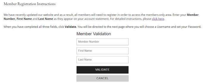 Enter your Member Number, First Name and Last Name exactly as they appear on your last statement and click Validate
