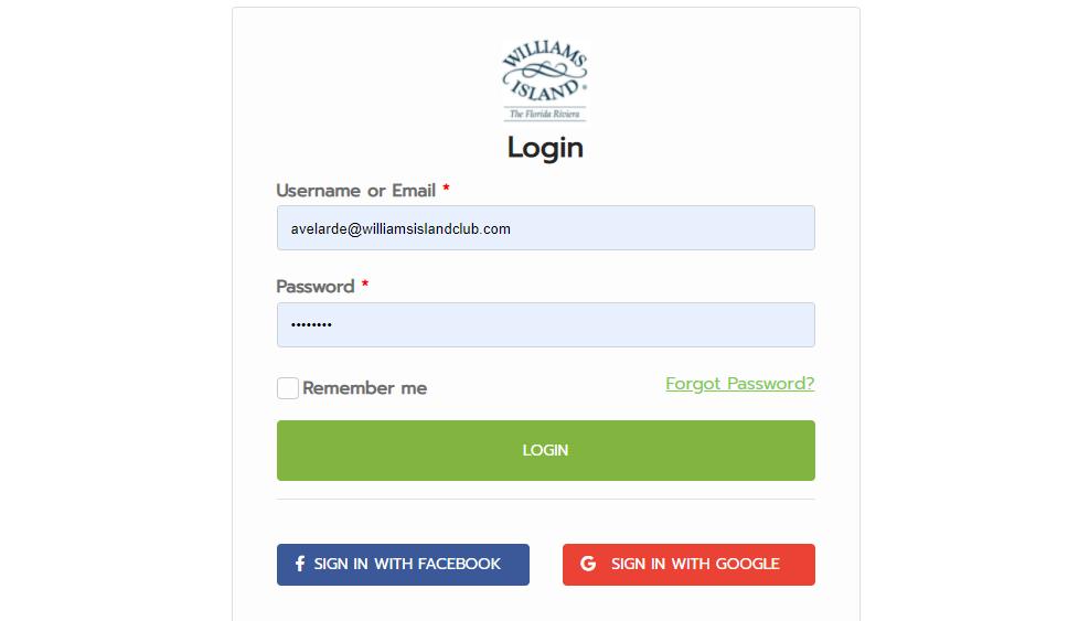 Before you log in for the first time, you must first validate your membership. Email williamsislandclub@williamsislandclub.com with your member number and you will receive an email with your username, temporary password, and instructions on how to change your temporary password if you desire to do so.