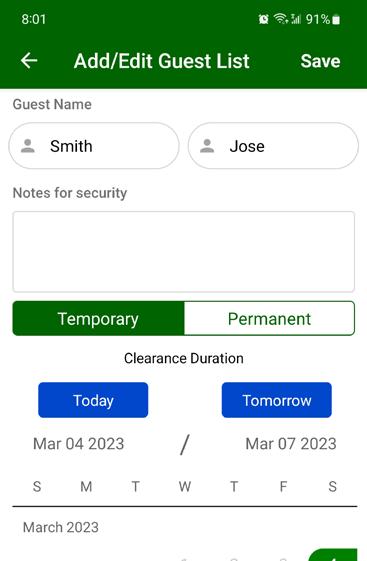 Specify Name, if guest is Permanent or Temporary and Duration of stay.