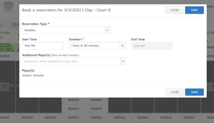 Choose your court and time.