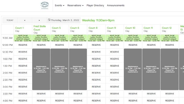 Log on to our Williams Island website and navigate to the TENNIS page. Click on BOOK A COURT or go directly to CourtReserve.com or download their app.