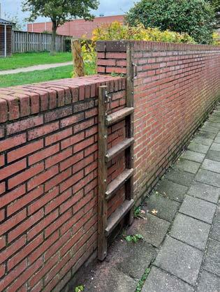 Het is niet helemaal duidelijk of de inofficiële verbinding tussen de brandgang achter de Van Royenlaan en het groengebiedje naast Albert Heyn een geitenpaadje of een olifantenpaadje genoemd moet worden, maar het is wel evident dat deze doorsteek het boodschappen doen vanuit de Van Royenlaan en De Sitterstraat richting het Helperplein aanzienlijk versnelt. Het succes van deze route is zonder meer te danken aan het degelijke trapje/laddertje dat iemand - of zijn het meerdere iemanden - jaren geleden maakte en met zekere regelmaat onderhoudt. Een paar weken geleden sloeg de gebruikers van deze doorsteek echter de schrik om het hart. Het trapje/laddertje was weg! Waren het de hangjongeren die hier uit balorigheid dit kunstwerk hadden gesloopt?