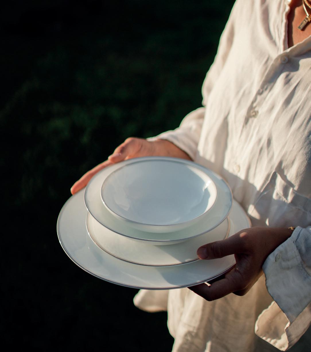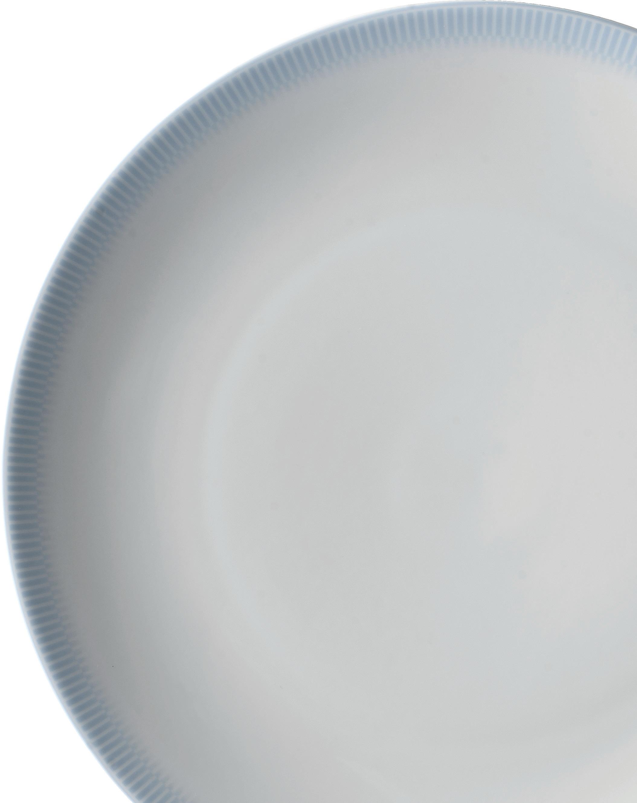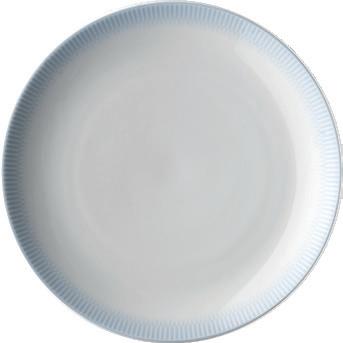 The plates are round with a wide rim and a gently curved well – a subtle frame for culinary expression. The series includes one 21 cm plate with a shallow well, and two 28 cm versions – one shallow and one semi-deep. Available in blue, grey, and green.