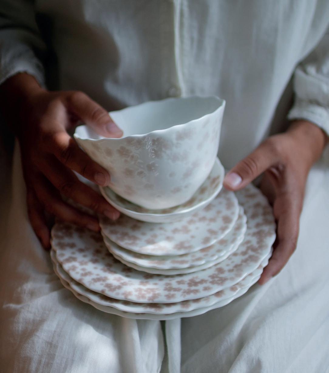 “Light and airy illustrations, as if carried across the porcelain by the wind.”