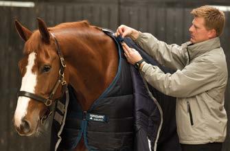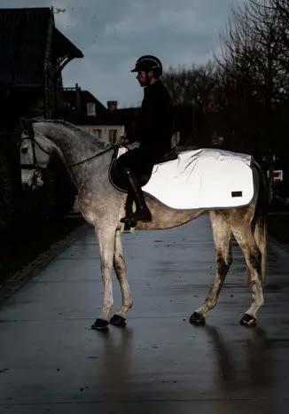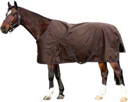 – Nepromokavých, aby váš kůň byl v suchu a teple i za nepříznivého počasí. – Přitom dostatečně prodyšných (ovšem méně prodyšných, než deky stájové).