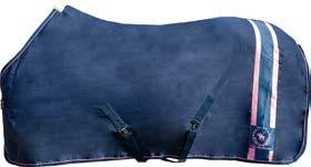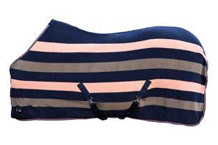 Bederní deka z hřejivého, prodyšného 100% polyester fleece materiálu v moderním pruhovaném designu. Deka má zapínání na suchý zip před sedlem a anatomický střih pro maximální kontakt s koněm. Velmi dobře odvádí pot a rychle schne. Zapínání na suchý zip před sedlem a fixována šňůrkou pod ocas.