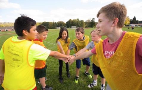 In Grade 7, there is concentrated focus on teamwork and strategy. Teamwork is promoted by encouraging students to pass the ball to all teammates, to take turns playing different positions and winning/losing with humility. Presenting different ideas and options for team offense and defense, as well as proper spacing and ball movement, emphasizes strategy. Grade 7 students are also introduced to the fitness room, where they learn how to use the free weights and weight machines with proper form, as well as the cardiovascular machines. In the fall, students will learn more about the games of football, soccer, volleyball, speedball (handball), Frisbee and many different tag games. During the winter, students will learn more about the game of basketball, a variety of dodgeball games, kickball, pickleball, yoga, relay races, partner and group cooperative games, gymnastics, modified wrestling/combative sports, agility and fitness, and weight training. During the spring, students will learn more about tennis, Wiffle Ball, track and field, hiking, swimming and yard games.