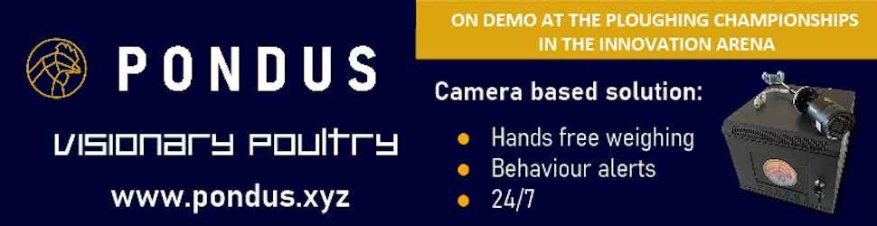 Pondus Ltd., a UK incorporated company has undergone four years of research and development on a vision based system to provide to the poultry industry an in-shed camera technology which uses artificial intelligence (AI) and machine learning to generate bird centric data direct into the hands of farmers to help inform of the health and welfare of birds 24/7. For birds, this ensures optimum health and welfare is maintained throughout their life cycle, and farmers can remain aware of activity and manage remotely, supporting their peace of mind when they cannot always be on site, particularly with Avian Influenza presenting challenges to shed entry and bird handling.