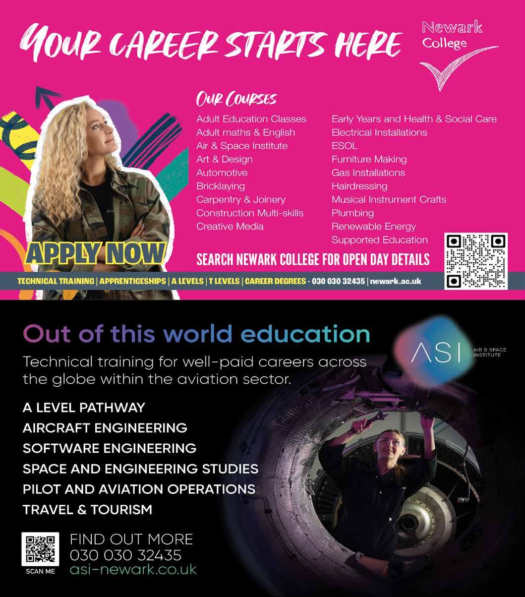 With outstanding sixth forms, forwardthinking colleges, and an expanding network of apprenticeship providers, Nottinghamshire gives its young people the tools to succeed in every field — from skilled trades to the creative industries, healthcare, science, and beyond.