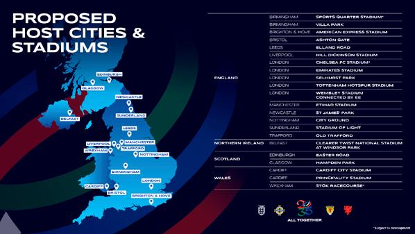 The bid includes 22 proposed stadiums – 16 in England (including Nottingham’s City Ground), three in Wales, two in Scotland and one in Northern Ireland – across 16 host cities. With 63 million people living within two hours of a proposed venue, it would be the most accessible tournament ever.