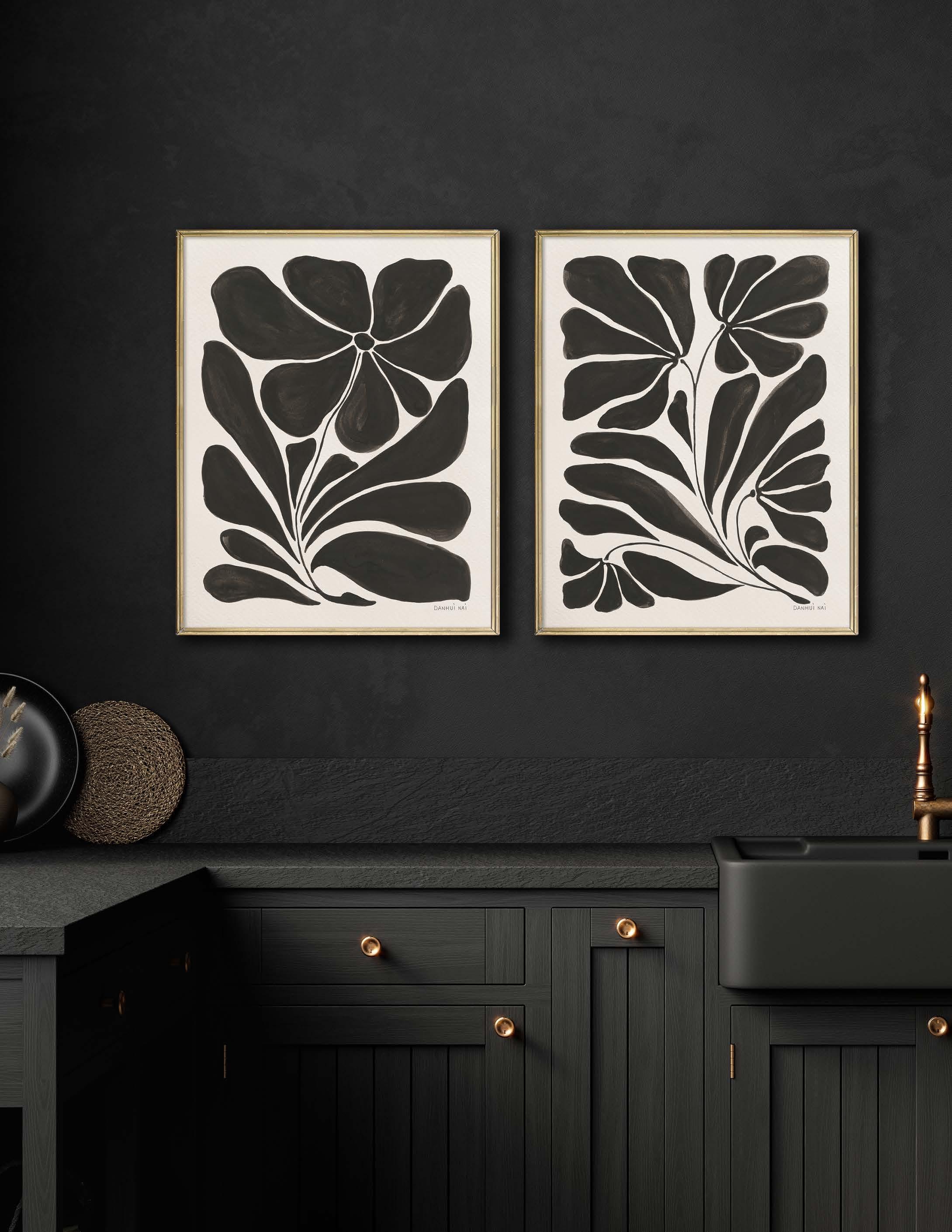 These collections stand out with their simplistic yet artistic compositions, primarily using a striking combination of crisp white and indigo. This look showcases the subtle beauty of botanical elements through a modern lens, making each piece a testament to artistic skill and creative vision. The use of blue, particularly in its deep indigo shade, adds a contemporary edge to the classic botanical theme, making these pieces perfect for modern interiors looking to add a touch of nature’s tranquility and sophistication.
