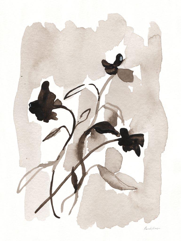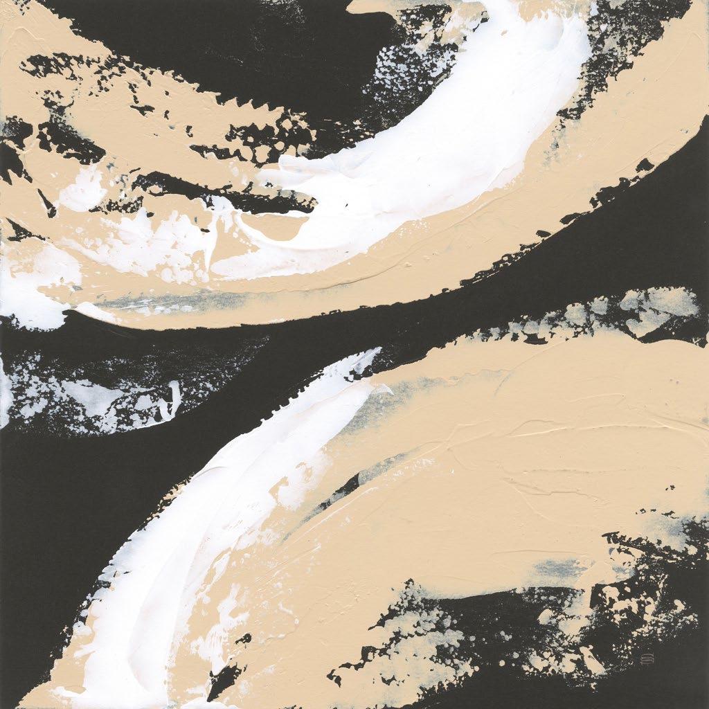 For decades her art has been inspired by traditional Chinese masters and Japanese Sumi-e painting, crossed with the edgy abstract expressionism of Kline, Pollock, Rothko, Gottlieb, Motherwell and Jasper Johns—thus redefining both mediums into her own contemporary style. Her art is abstractly interpretive as she uses assorted mediums including gesso, resist, watercolor, gouache, text, encaustic, collaged paper and accents of gold leaf to achieve her images.
