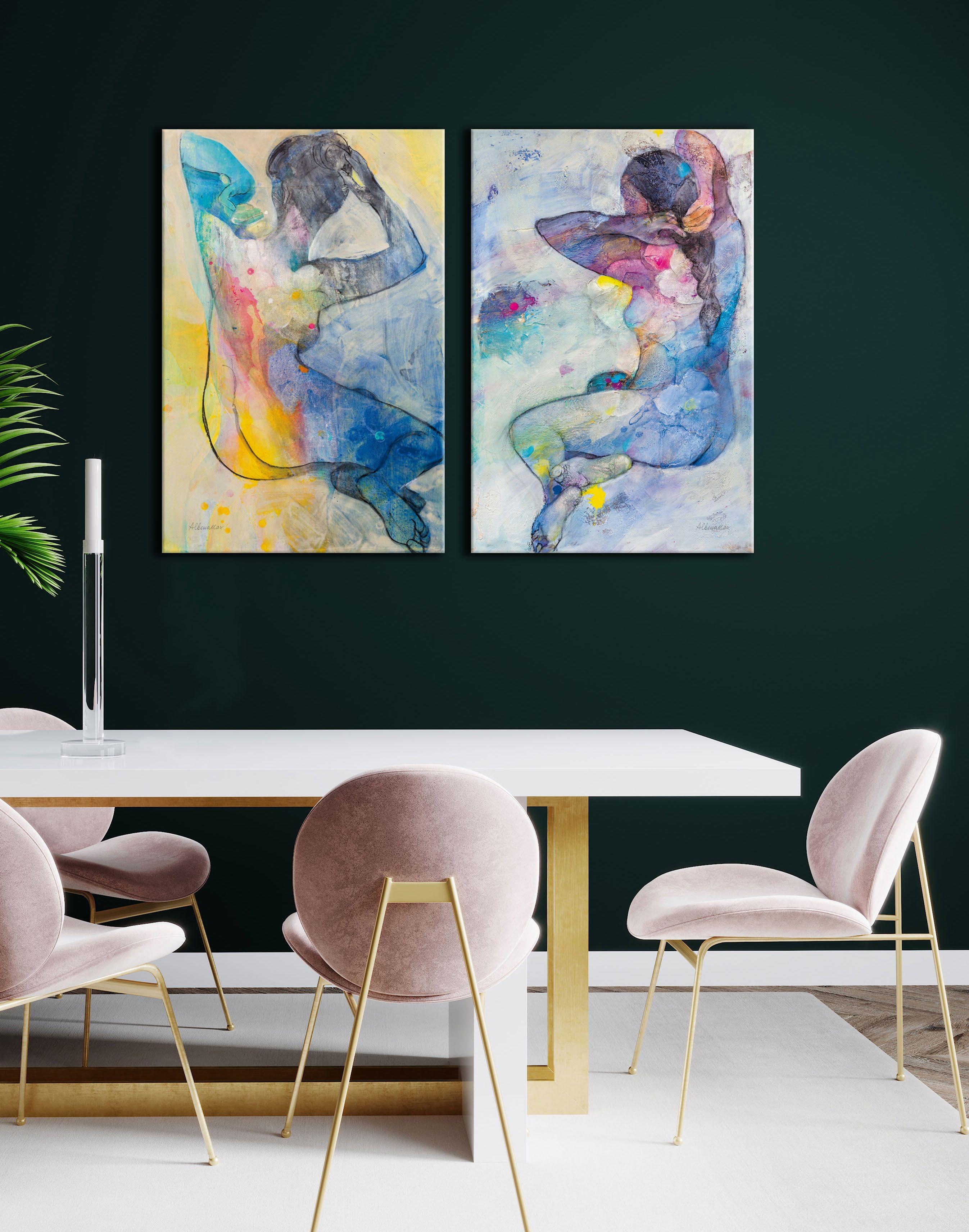Need a little pick me up? Art can do that. It started on the runway and it’s making its way to the home. Bright colors in every wonderful shade are capturing the attention of designers and consumers alike, who are longing to add cheer and happiness to their homes. We’re loving modern abstract collections with bright pops of electric blue, yellow and pink to add an unexpected pop of color into our lives.