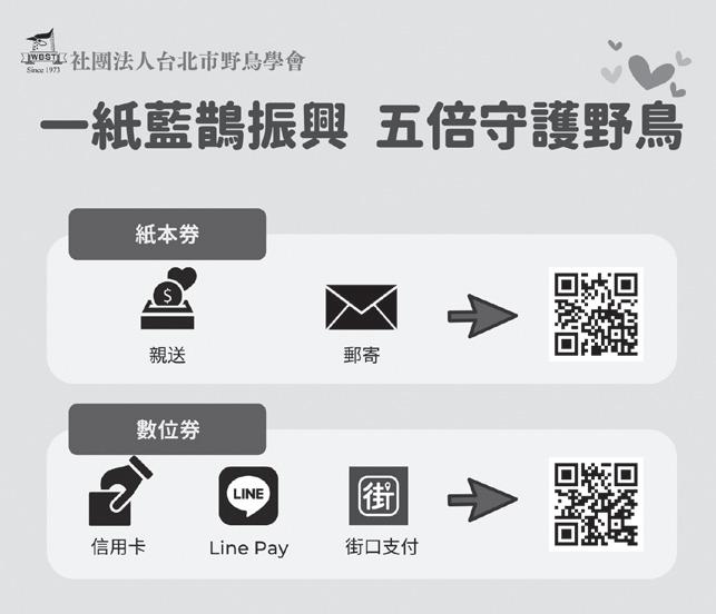 台北鳥會的成立宗旨為「欣賞、研究、保育」,我們長久以來站在第一線為野生鳥類及 其棲息環境發聲,為了保育之路走得更長遠,誠摯邀請您一同參與、支持!