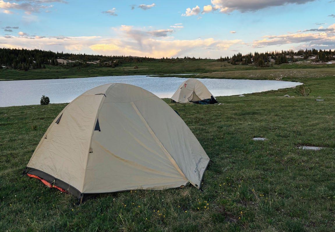 Frontcountry tent camping involves setting up camp at an established campground that your group can drive a van to. Think of it as car camping. While amenities vary from site to site, these campgrounds typically offer picnic tables, fire rings, pit toilets, and sometimes even running water and showers.