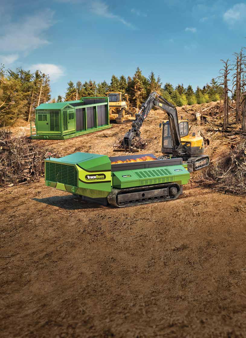 Air Burners is the most cost-effective end solution for wood waste elimination on the market today. For 25 years, our patented air curtain technology has delivered a clean, environmentally-friendly burn with no grinding, hauling, or open pile burning. TrackBoss, the self-contained, fully-assembled, above-ground, pollution-control air curtain burner, reduces slash piles onsite—including whole trees, logs, stumps, and other biomass waste. Forestry services, tree companies, and disaster relief agencies turn to the trailermounted mobility of TrackBoss to clear land, brush, and other potential fire-hazardous natural debris to mitigate wildfires and protect our lands and forests.
