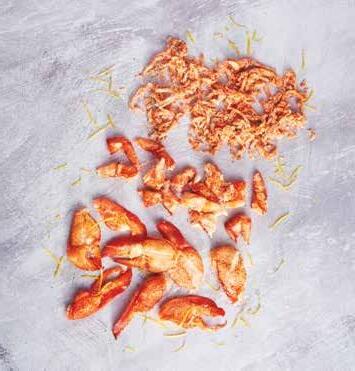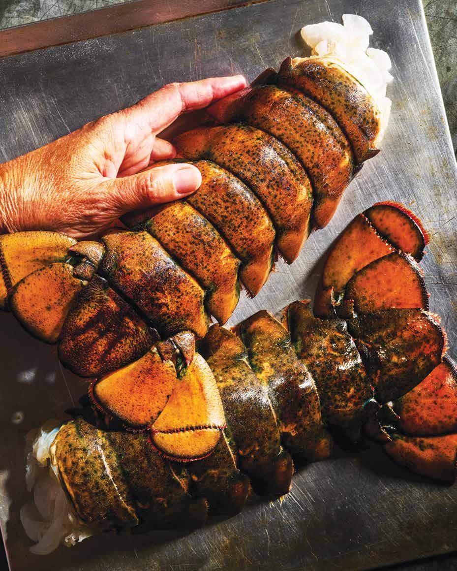 1. Using a sharp knife, cut the lobster tails in half lengthwise. Season with salt and pepper.