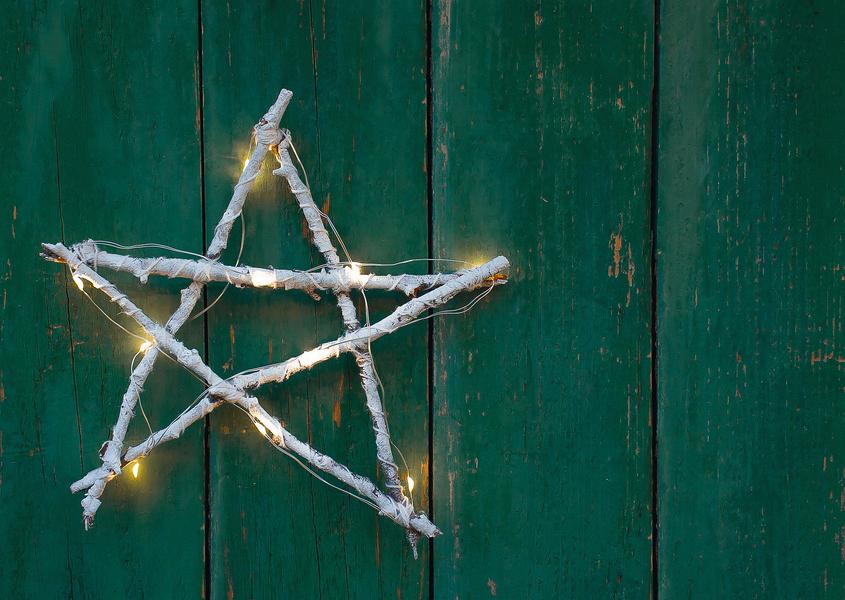 Instructions: Arrange twigs in the shape of a star, tying the intersections with twine. Add small beads or eco-friendly glitter for decoration For extra sparkle add some reusable fairy lights wrapped through each section of the star.