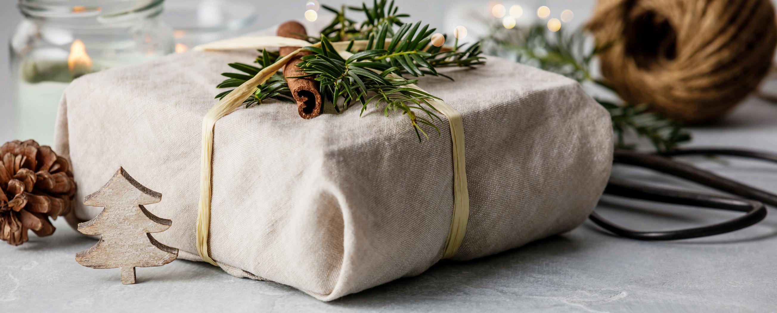 Instructions: Use fabric to wrap gifts in the Japanese Furoshiki style This zero-waste wrapping can be reused by the recipient Packaging: The wrap itself becomes the packaging, tied with a knot or with a twine ribbon for a rustic, eco-friendly touch Top with a cinnamon stick, sliced dried orange or sprig of holly