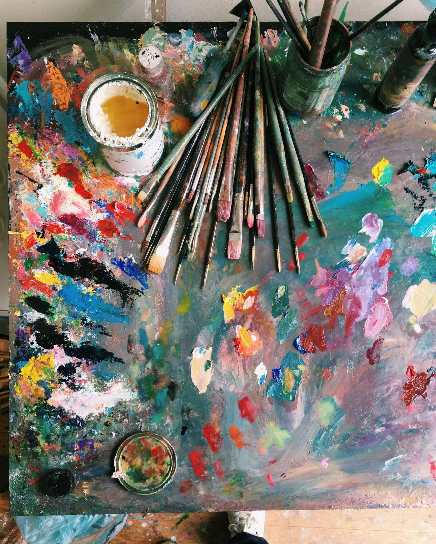 Led by Olivia Mabey, a local artist, we started off by discovering a little about the history of pigment paints and the clays used to create them. We used natural pigments from Okhra, Ecomuseum of Ocher (Roussillon, Provence) and, using Olivia’s recipe, blended, mixed, and scraped the pigments until we had perfectly smooth paints